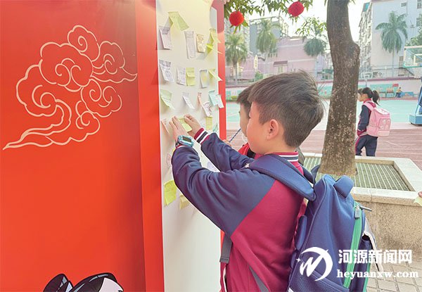 河源市第二小學(xué)的學(xué)生在許愿區(qū)寫下對(duì)新學(xué)期美好的祝愿和期待。