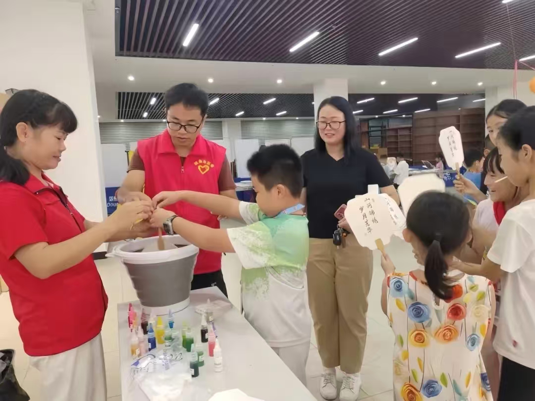 在文化傳承體驗區(qū),“醒獅手工燈籠制作”與“非遺漆扇體驗”尤其引人注目,吸引了不少親子家庭參與。在志愿者認(rèn)真指導(dǎo)下,家長與孩子們默契配合,全神貫注地投入到創(chuàng)作中。當(dāng)一個個栩栩如生的醒獅燈籠在手中點亮,當(dāng)一把把獨一無二的漆扇在指尖綻放絢麗的色彩,孩子們臉上綻放出燦爛而欣喜的笑容,家長則在親密協(xié)作中感受到濃濃的溫情。