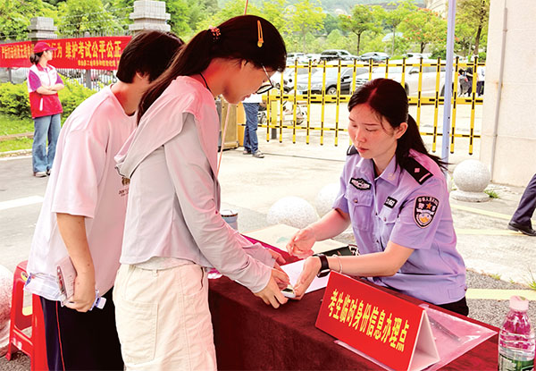 民警為考生提供服務(wù)。本報記者 劉奇峰 曹志成 李馨 實習生 鐘昊哲 攝
